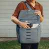 De tas is gemaakt van weerbestendig 400D gerecycled nylon canvas en afgewerkt met degelijke ritsen en versterkte naden. De schouderband is gevoerd en verstelbaar, en dankzij de stabilisatieband draag je de tas ook comfortabel tijdens het fietsen of bewegen.