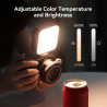 De lamp beschikt over instelbare helderheid en een variabele kleurtemperatuur, zodat je het licht eenvoudig kunt afstemmen op de omgeving of bestaande lichtbronnen. Hiermee voorkom je ongewenste kleurzweem en behoud je controle over de sfeer van je opname.