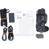 Camera, accu, lader, netsnoer, usb-kabel, handleiding, draagriem.